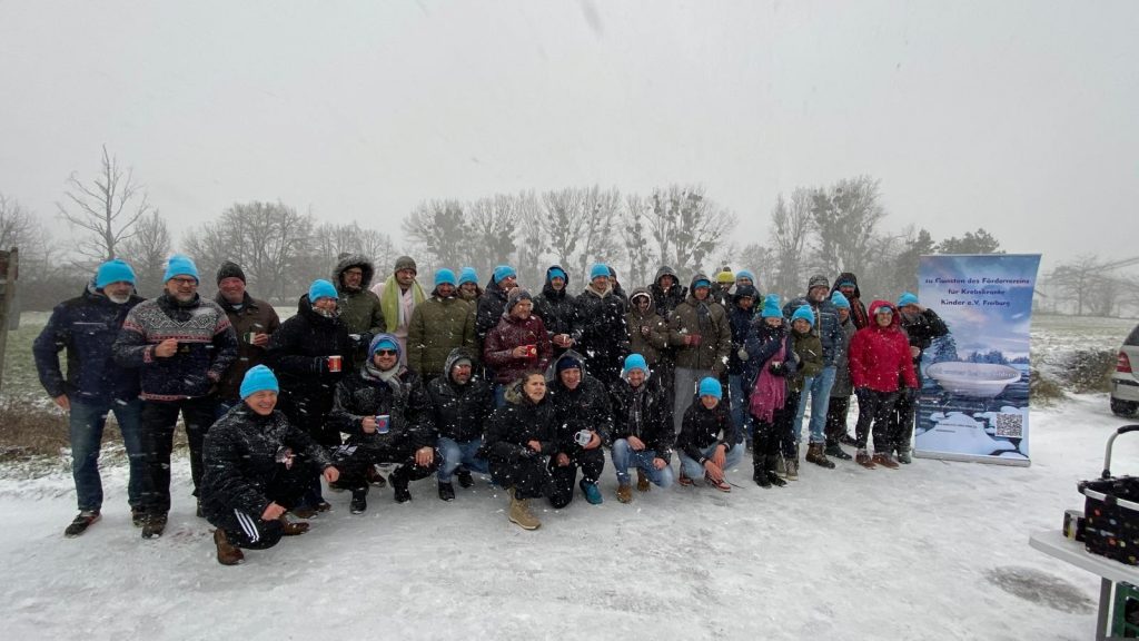 Wahrlich nur etwas für Hartgesottene: mit einigen andern traf man sich zum Eisbaden und sammelte zeitgleich Spenden für den „Förderverein für Krebskranke Kinder e.V. Freiburg“ unter dem Motto „cold water helps children„! Die Bedingungen waren absolut winterlich mit einer Lufttemperatur von -1°C und einer Wassertemperatur von 6°C – dazu Schneefall und ein eisiger Wind als die Teilnehmer ins Wasser gingen und teilweise minutenlang ausharrten.