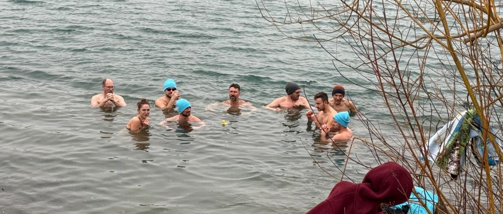 Zittern für einen guten Zweck: Bei einer coolen Anbade-Aktion zugunsten des „Förderverein für Krebskranke Kinder e.V. Freiburg“ am Baggersee in Gamshurst nahmen auch Mitglieder vom SV-Gamshurst teil.
