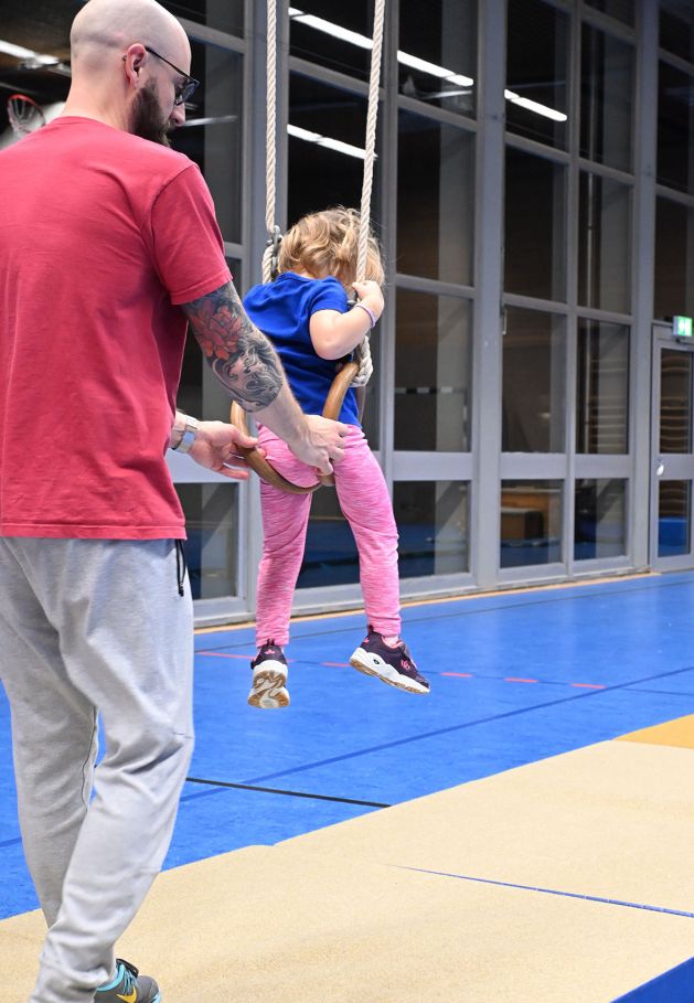 Jeden Freitag treffen sich die 3- bis 6-jährigen Kinder zu den Ballbinis. Im Mittelpunkt stehen dabei Bewegung, Koordination und die spielerische Gewöhnung an den Ball. Durch abwechslungsreiche Übungen lernen die Kinder, ihren Körper besser zu kontrollieren und den Ball sicherer zu handhaben. Besonders wichtig ist aber, dass die Kinder Freude an der Bewegung entwickeln. In kleinen Spielen und Stationen entdecken sie gemeinsam, was man mit einem Ball alles machen kann. Die Gruppe bietet ihnen dabei Sicherheit und motiviert sie, Neues auszuprobieren. Gleichzeitig stärken die Kinder ihr Selbstvertrauen, weil sie viele Erfolgserlebnisse sammeln. So wird jeder Freitag zu einem sportlichen Erlebnis, das Bewegung, Lernen und Spaß miteinander verbindet.